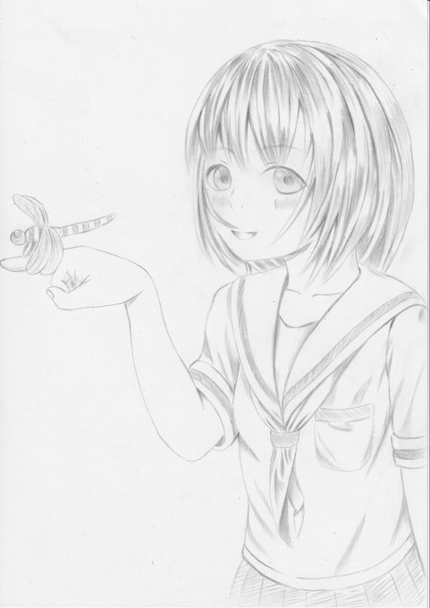 1 15 今週の絵。 「トンボと女の子」 #イラスト #絵 #アナログイラスト 22/10/02 15:48