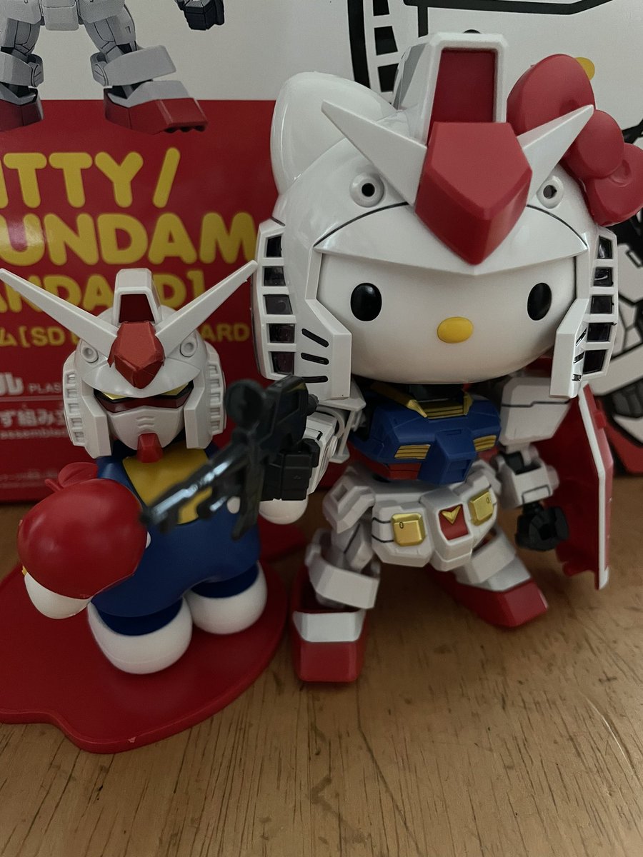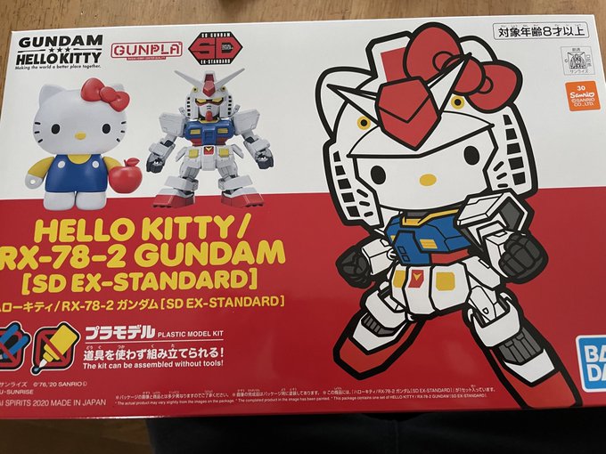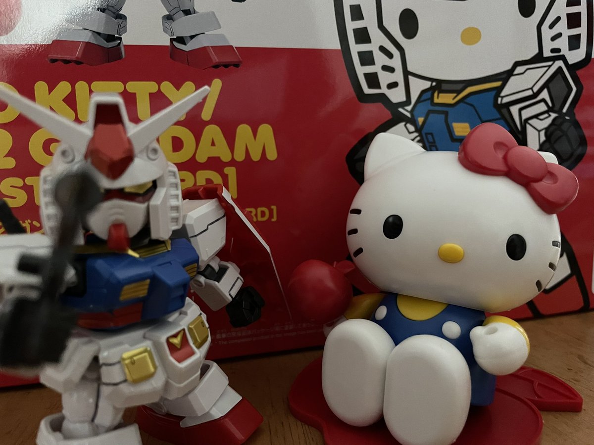 完成!ハローキティ/RXー78ー2ガンダム!!塗装しました。ポーズは許してください、、、 #ガンプラ #ガンプラの画像貼るとRTされると聞いて #ガンプラは自由だ #ガンプラ好きと繋がりたい