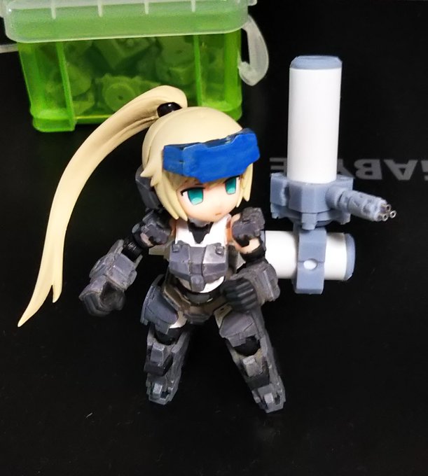#作品をみてくださいあわよくばフォローしてください祭 自分で規格を作って #デスクトップアーミー 用のオリジナル装備を作ったり #デスクトップ秘密基地 と称したりオリロボを作ろうと画策したりしてます。