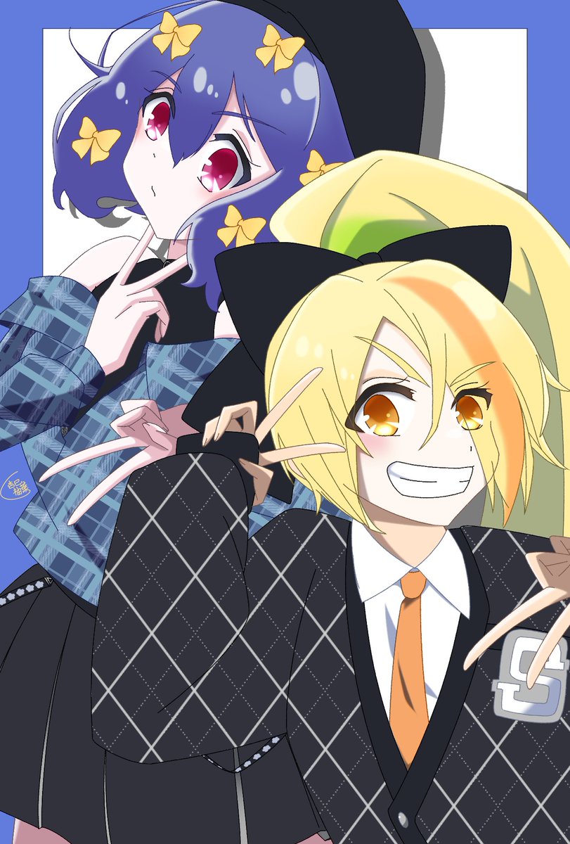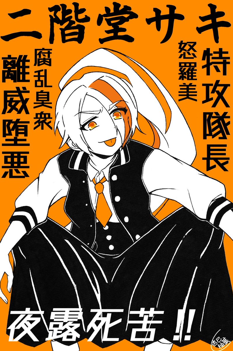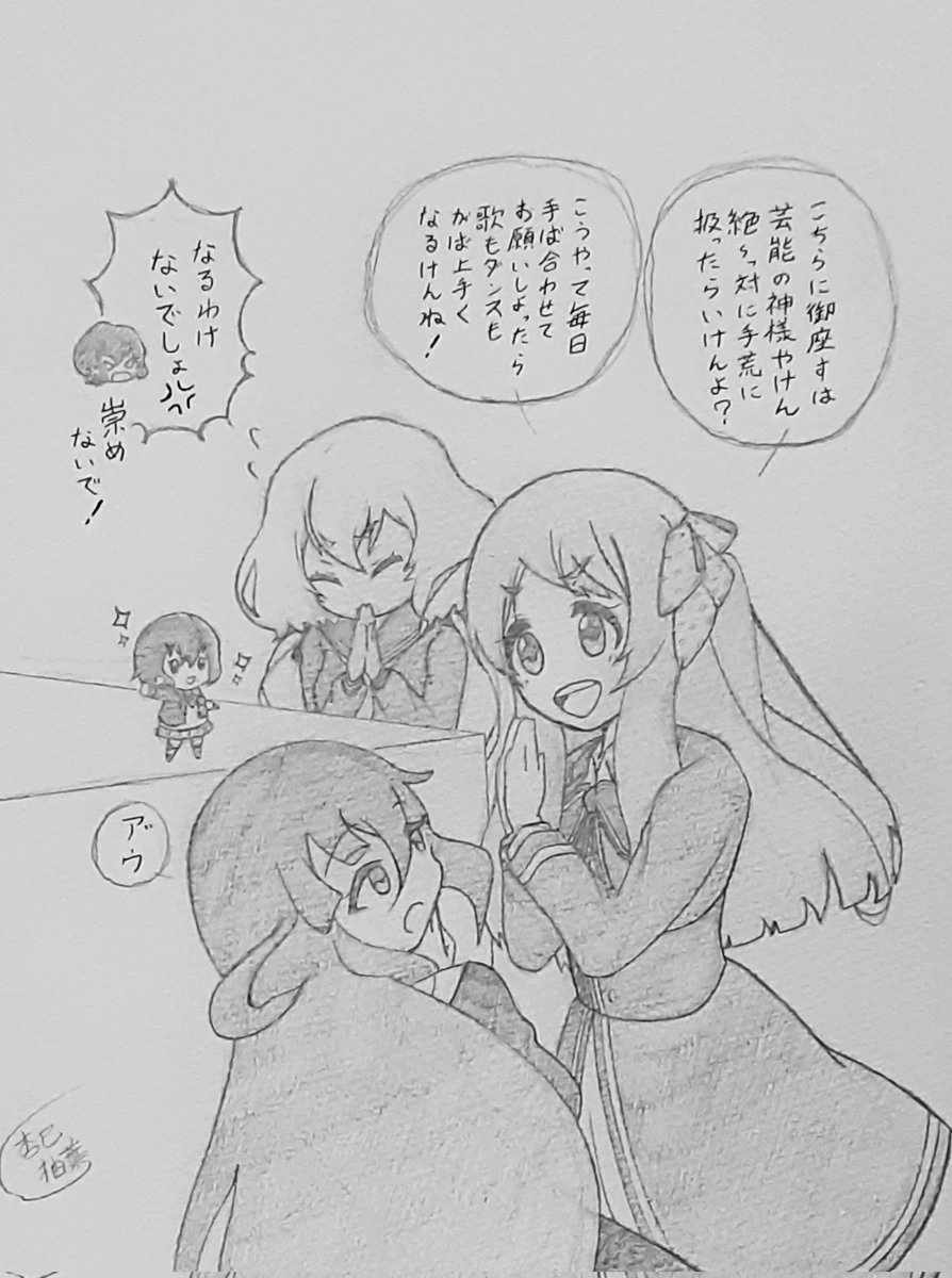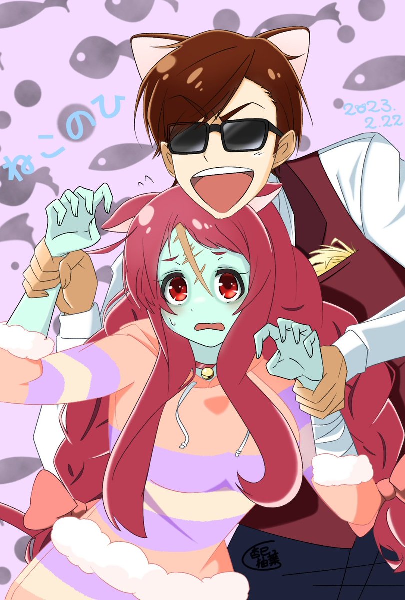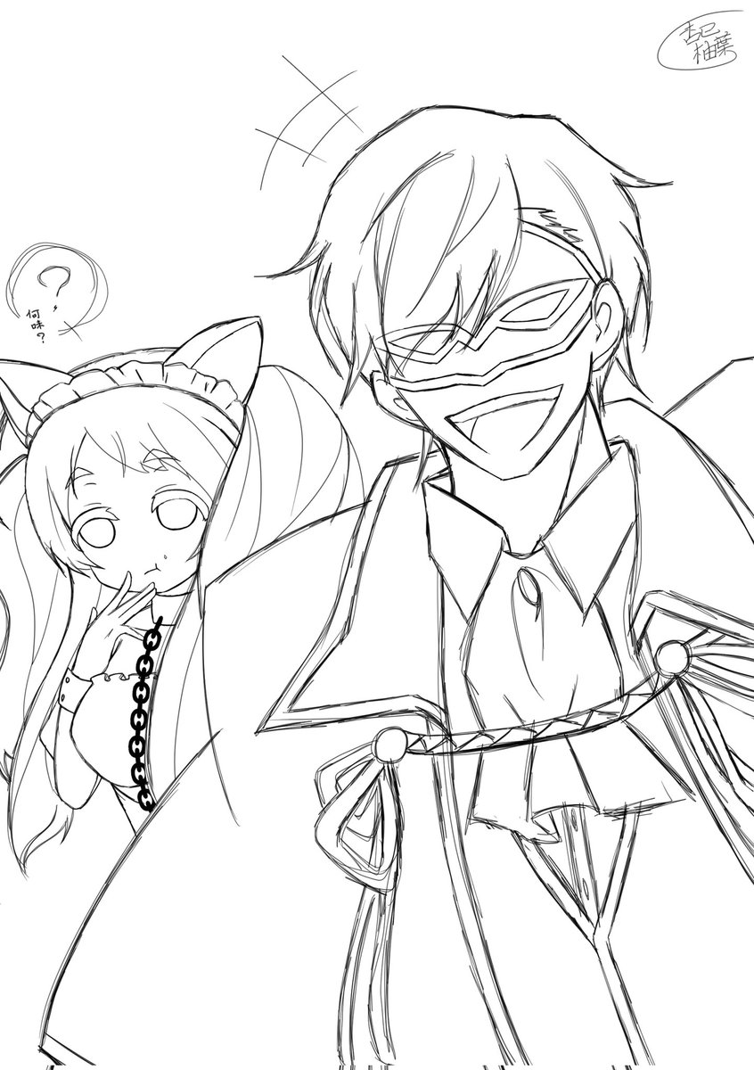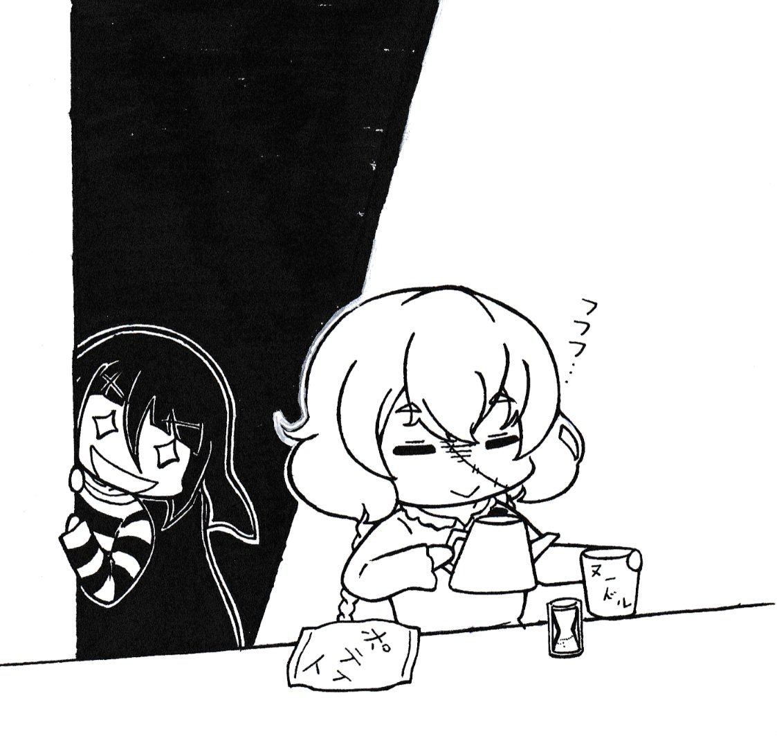 #ゾンサガ版深夜の真剣お絵かき60分一本勝負 お題『他作品パロ』 妖狐×僕ssより青鬼院蜻蛉(鬼)&髏々宮カルタ(がしゃどくろ) 一応お化け要素もあるのでもうひとつのお題にも沿えるかなぁってことでw