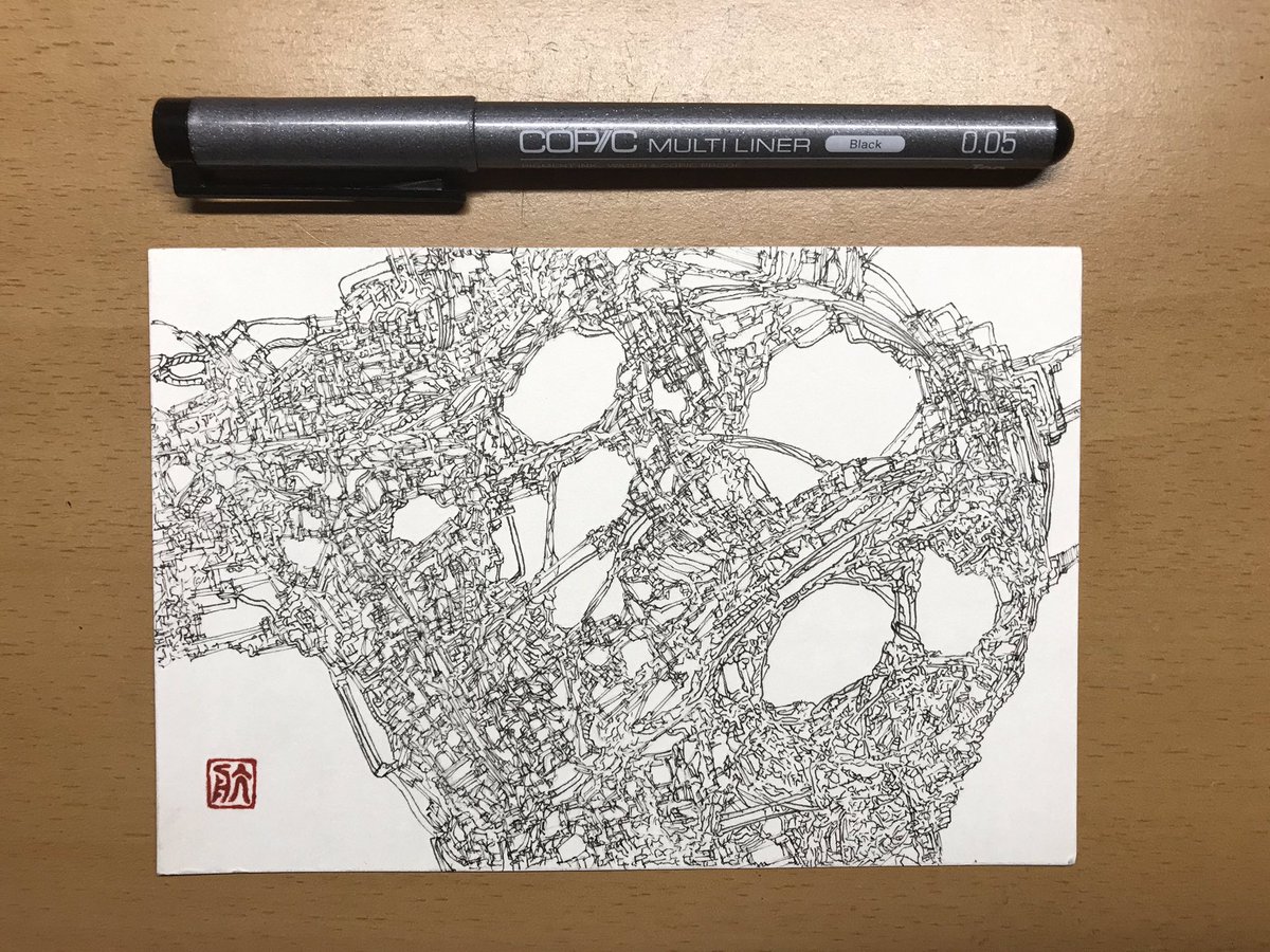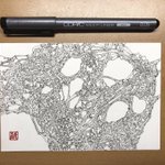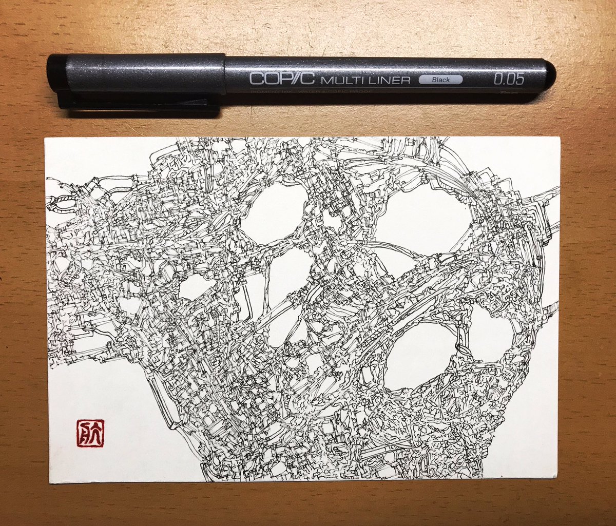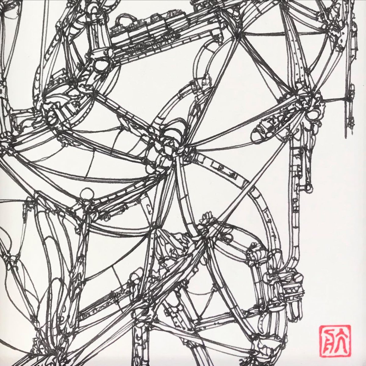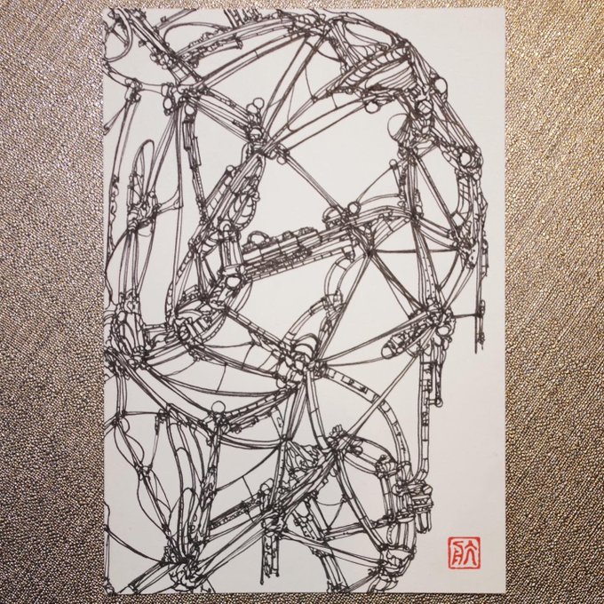 「膨張を終えた空間が崩壊する」 「The space that has finished expanding collapses」 「L'espace agrandi s'effondre」 下書きなしで一発描き。 適当に描きながらバランスとってるから自分でもどんな絵になるか分からない。 とりあえず描きながら色々探る。 #イラスト #イラストレーション