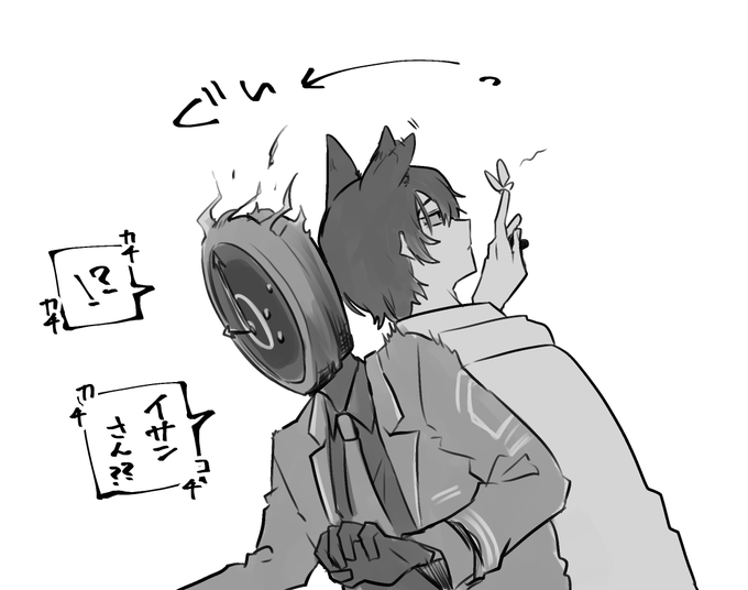 なんか描きたくなった⏰と🦊🪶