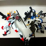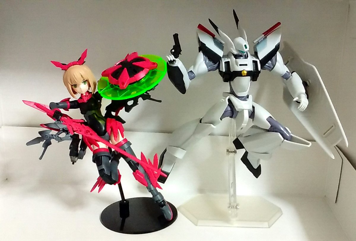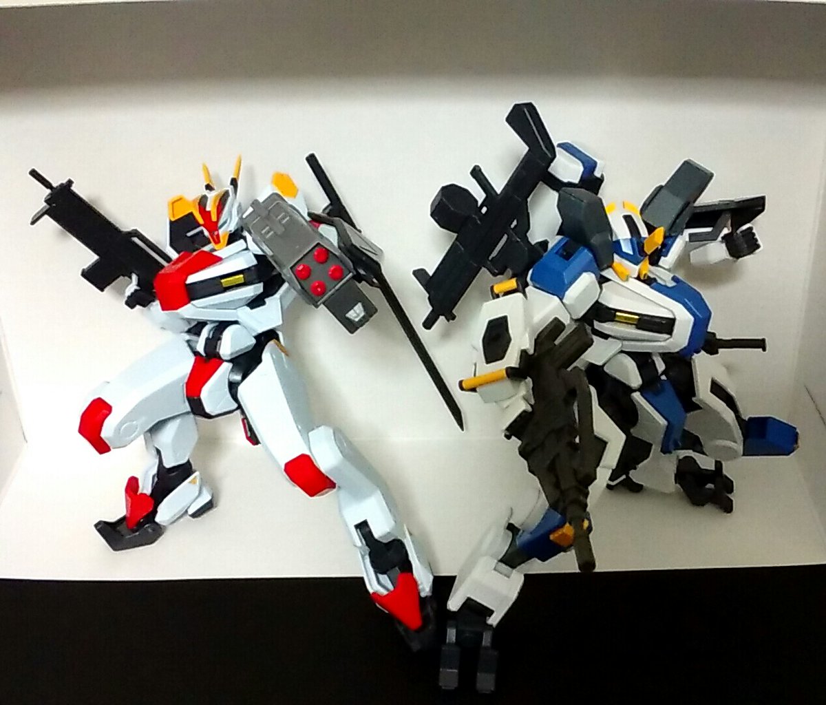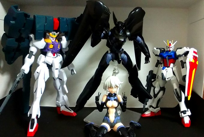 #今月作ったプラモ晒そうぜ 何度も言いますが、ピースメーカーの足裏装甲は接続ピンにはめ込まずに左右の装甲で挟み込んで下さい。 そうすることで膝の可動域が向上します。(画像のピースメーカー左足参照) ティアーシャの剣は塗らないとな…🍱の肉団子に刺さってるプラ楊枝に見える💧