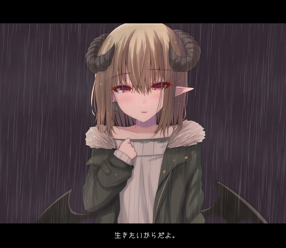 >香染ミアに「何のために生きてるの?」と問うと、大雨にうたれながら、香染ミアはすべてを見透かしたような顔で、「生きたいからだよ」と答えた。 っていう診断メーカーの結果がエモかったので描きました #カシミアート