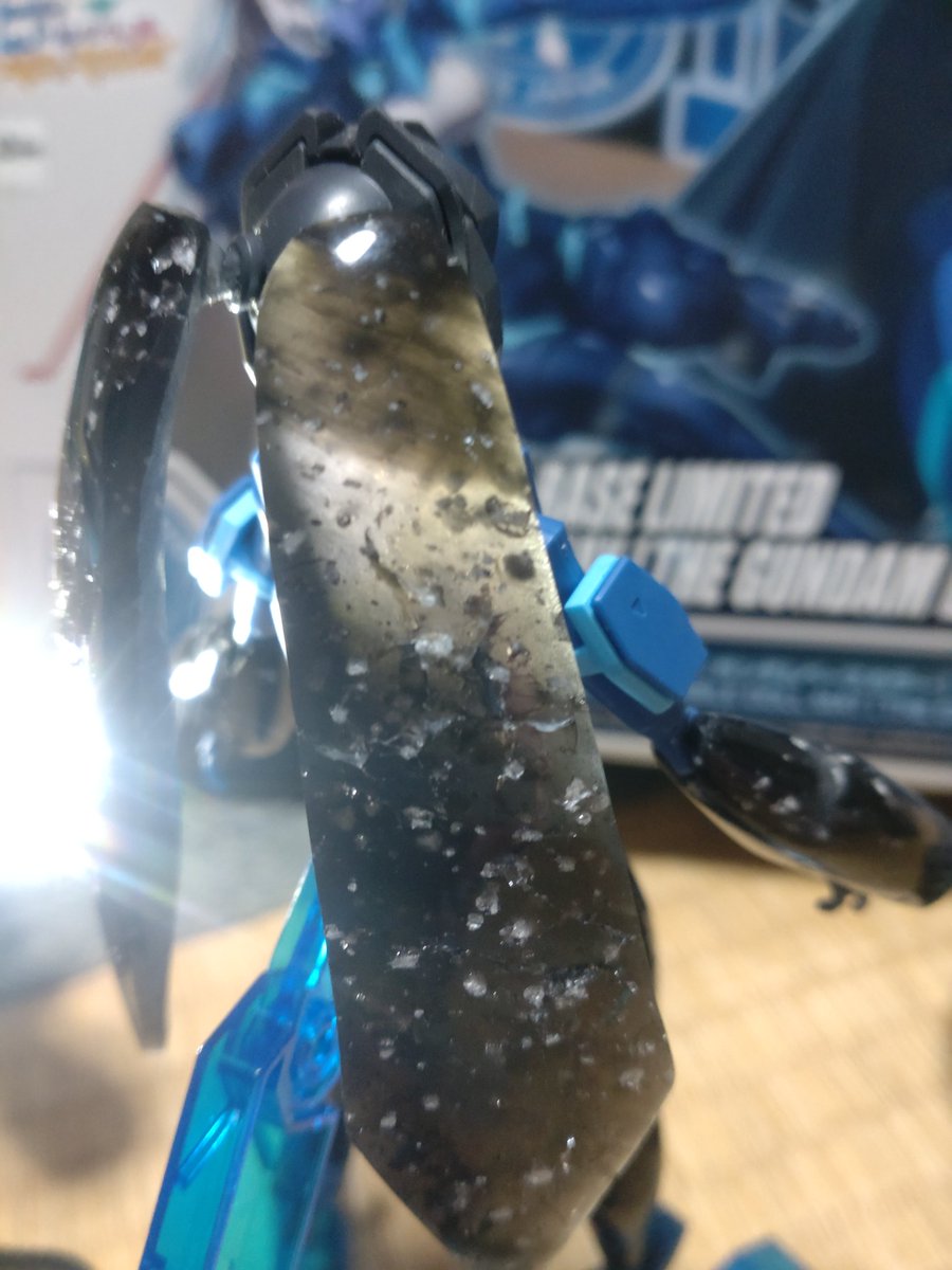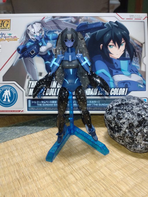 #今年作った模型晒そうぜ こんなタグがあるらしいので改めて我が社の看板娘を上げてみる。 素組ガンプラと天然石の黒曜石を加工して組み合わせました。たぶん世界初。 詳しいことは過去ツイートにて。 #ガンプラはどんな自由な発想で作ってもいいんだ