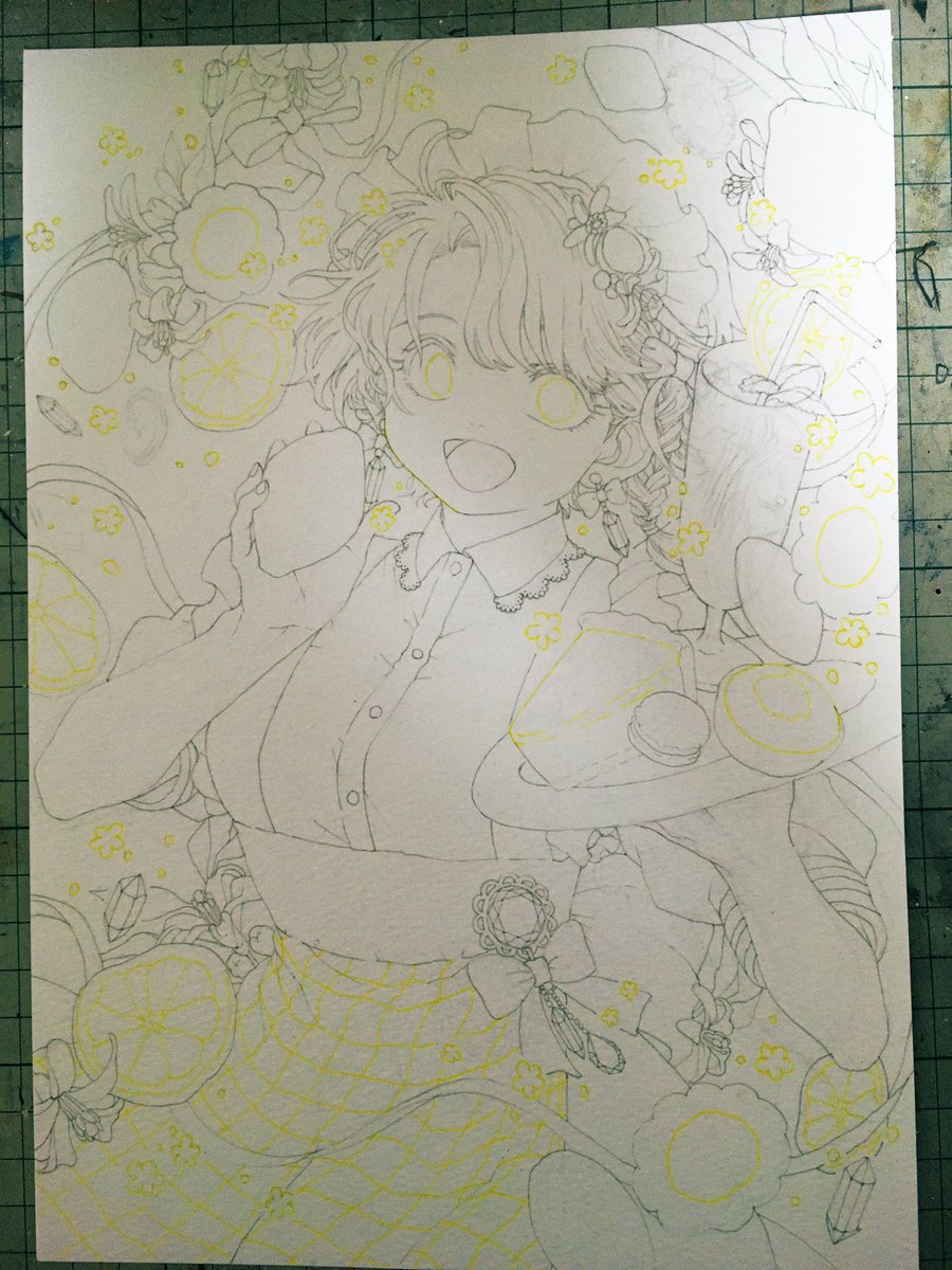 ラフ→下描き→ペン入れ→塗り途中 #コピック