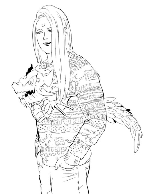 神龍が貫通しているセーターを着ているゼノスを描きました