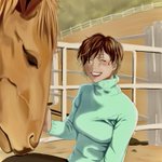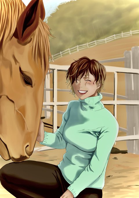 6 47 ウマ娘(馬とたわむれている娘) つくねちゃん #illustration #horse 22/06/30 01:54
