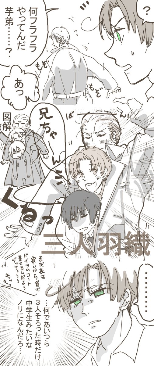 ユニフォーム、プの国旗がモチーフという話だから 選考基準に「兄にいちばん似合う」がありそう という落書き。