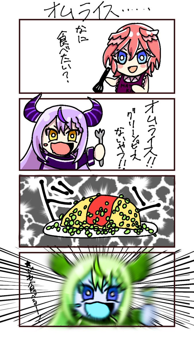 ルイ姉、ラプ様にグリーンピースましましのオムライスをお願いします! #laplus_artdesu #Luillust