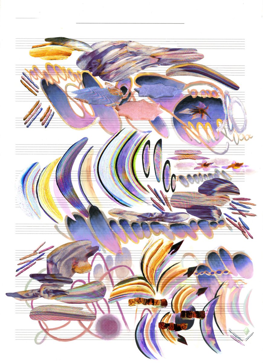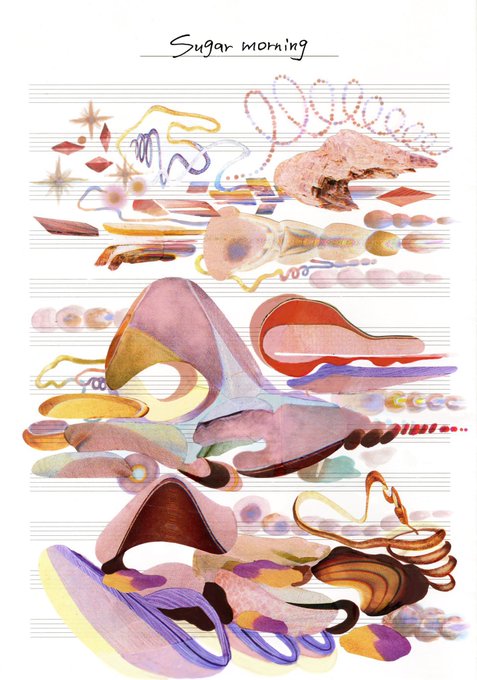 八木海莉さんの新譜「水気を謳う」の中の4曲を聴き、音から浮かぶ色彩を五線譜に描きました。 🎧 kmu.lnk.to/VeqaaP5h とても素敵なので、絵を眺めながら聴いて頂けたら嬉しいです。 タイトルの字は海莉さんが書いてくれました!!ありがとう〜❣️🌙 #scoredrawing #八木海莉 #水気を謳う