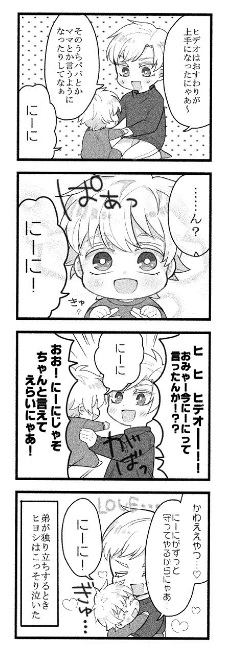 赤ちゃんのロナくんに「にーに」って呼ばれて大喜びするヒヨニキ(ショタ)の漫画です👶🍼 ※4コマ