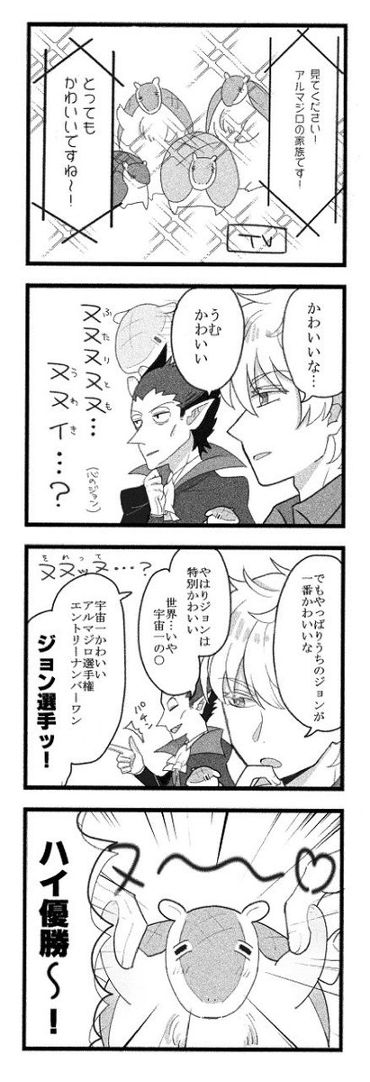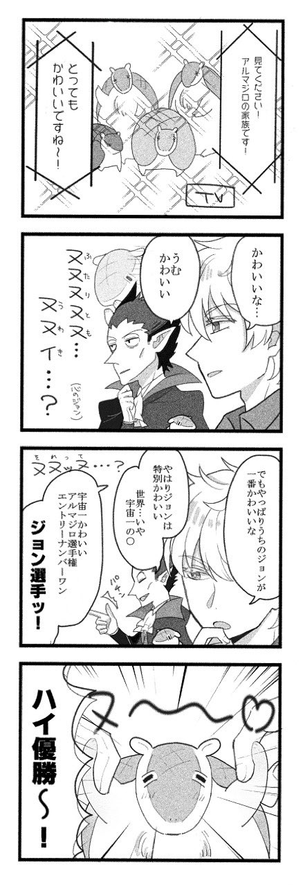 ドとロ主催、宇宙一かわいいアルマジロ選手権で優勝(約束された勝利)するただ1匹のジョン ※4コマ