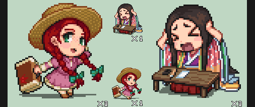 赤毛ちゃんと小野小町 #ドット絵 #pixelart #マイクリ
