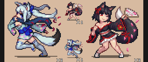 2 7 だイさん依頼の狐娘ズ #ドット絵 #pixelart 23/07/04 17:15