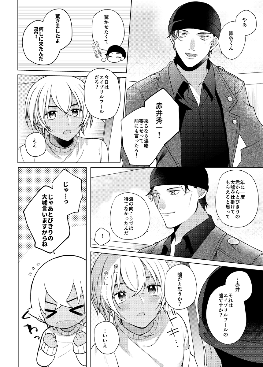 お題「嘘」 開催日が4/1だったのでエイプリルフールネタにしました🙌半分ほど事前制作です~ #赤安ワンナイト・ドローイングアンドライティング