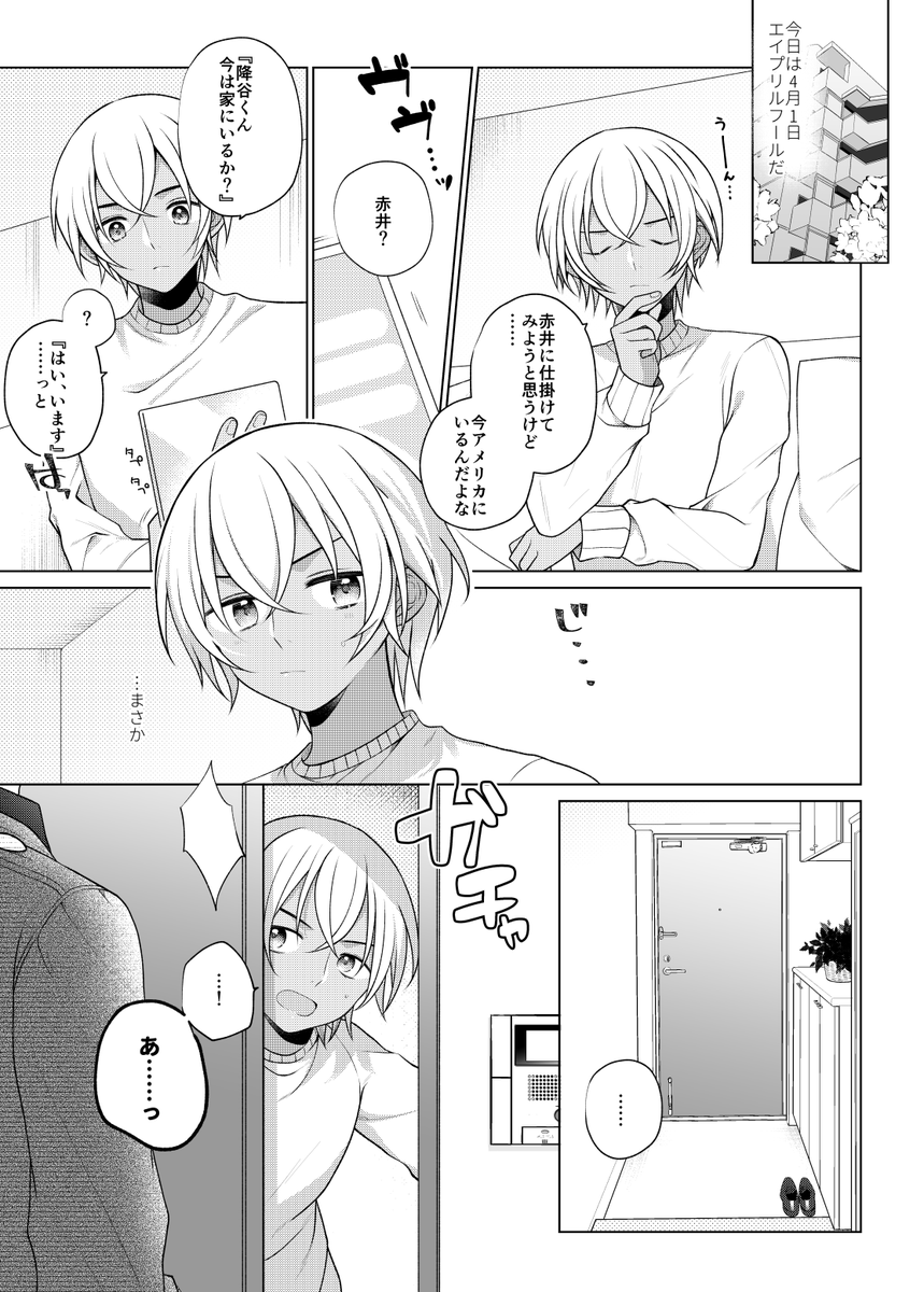 44 281 お題「嘘」 開催日が4/1だったのでエイプリルフールネタにしました🙌半分ほど事前制作です~ #赤安ワンナイト・ドローイングアンドライティング 23/04/02 00:16