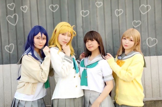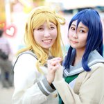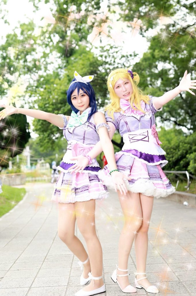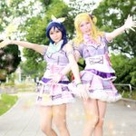 ラブライブ!サンシャイン!! 君のこころは輝いてるかい? 右💜まりー (あやめ) 左💚かなん (@Nzel__yr) photo📸 (@kiyoppesan) #コスミート #アコスタ鶴舞 #ぴゅあっこあぴゅあ
