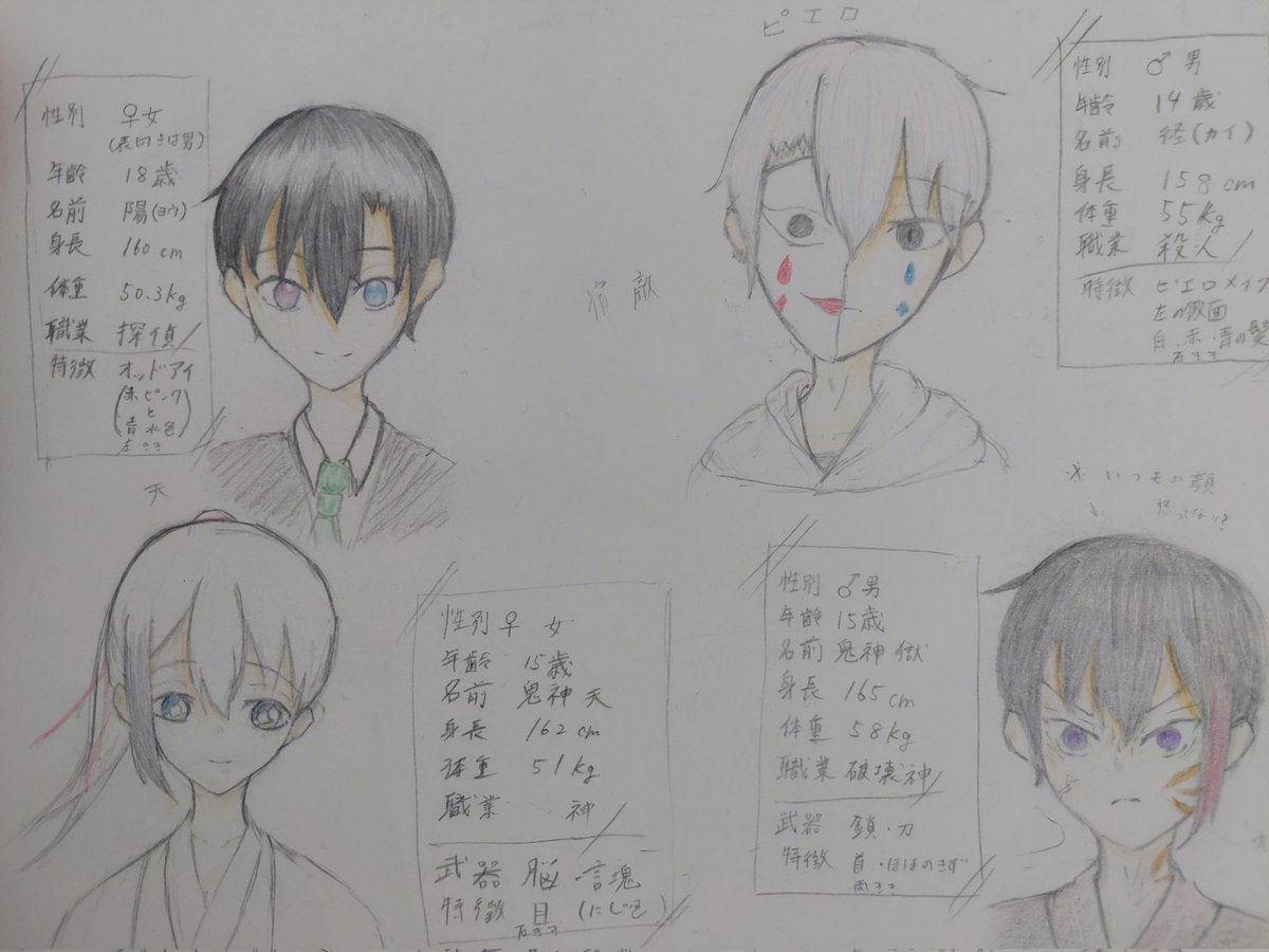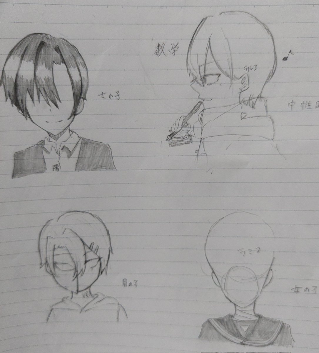 この前書いたオリさんのうちの4人です。中学?の時に書いたので設定とか曖昧なのは気にしないでください!! 今日はHPが少ないため描けません m(_ _)m #イラスト #絵描きさんと繋がりたい #絵描きさんフォロバ100