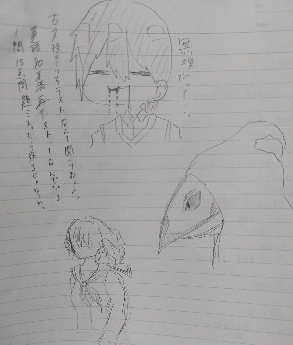 授業中の落書きが1番好き。 が、今回のはあんまり面白くない。 いつもは四コマとか作って遊んでる。 ちゃんと授業受けろや私!! #イラスト #絵描きさんと繋がりたい #絵描きさんフォロバ100