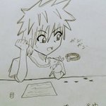 1 15 #イラスト #イラスト初心者 #猫のいる暮らし #ねこ 「透明ネコのクリアと大学生のケンジくん」 その8 シャーペンを噛んで勉強の邪魔をするクリア 21/02/09 22:08