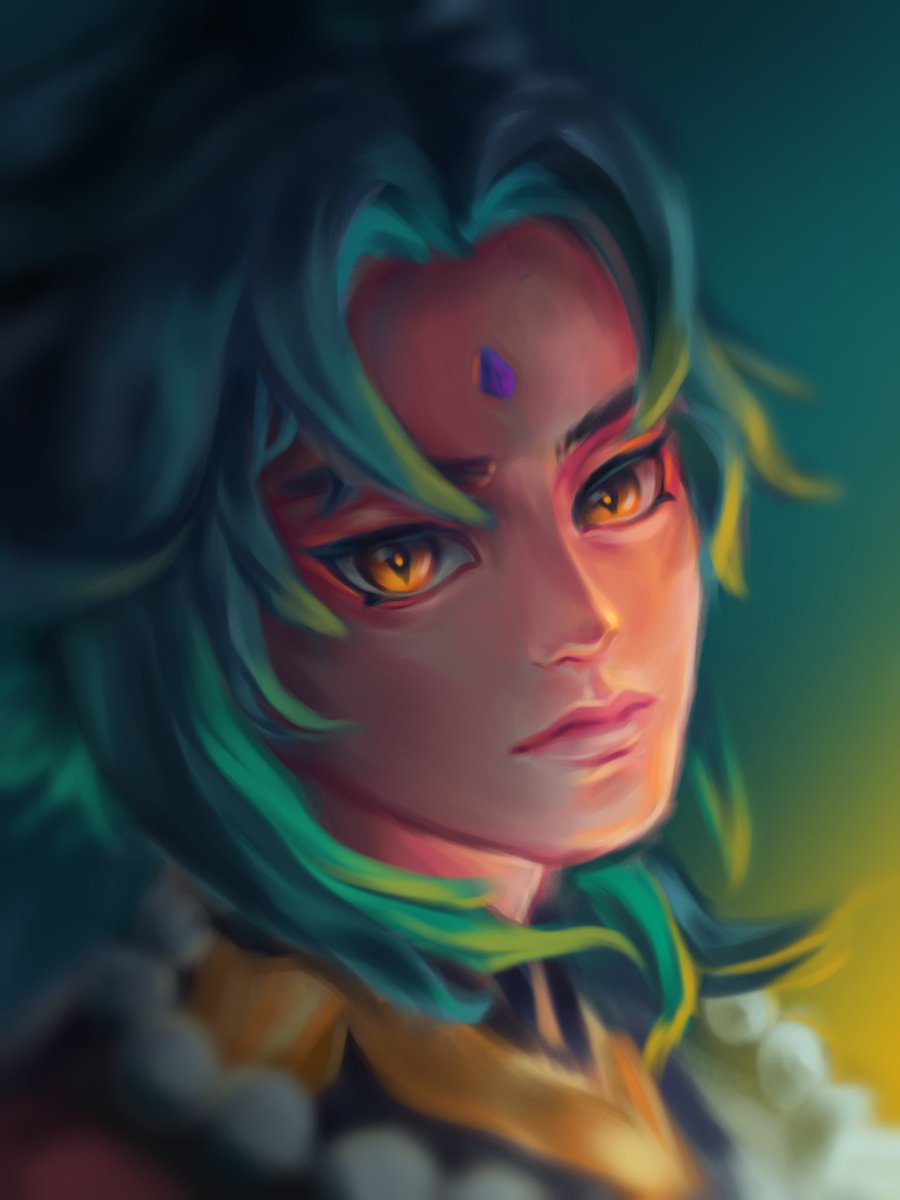 Finally, we got Xiao and Zhongli 👺💥 This was definitely challenging but I had so much fun. In the future, I would like to try out non-human characters as well like Totoro 🥺 #artph #SixFanarts #GenshinImpact