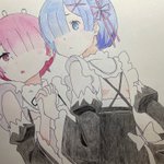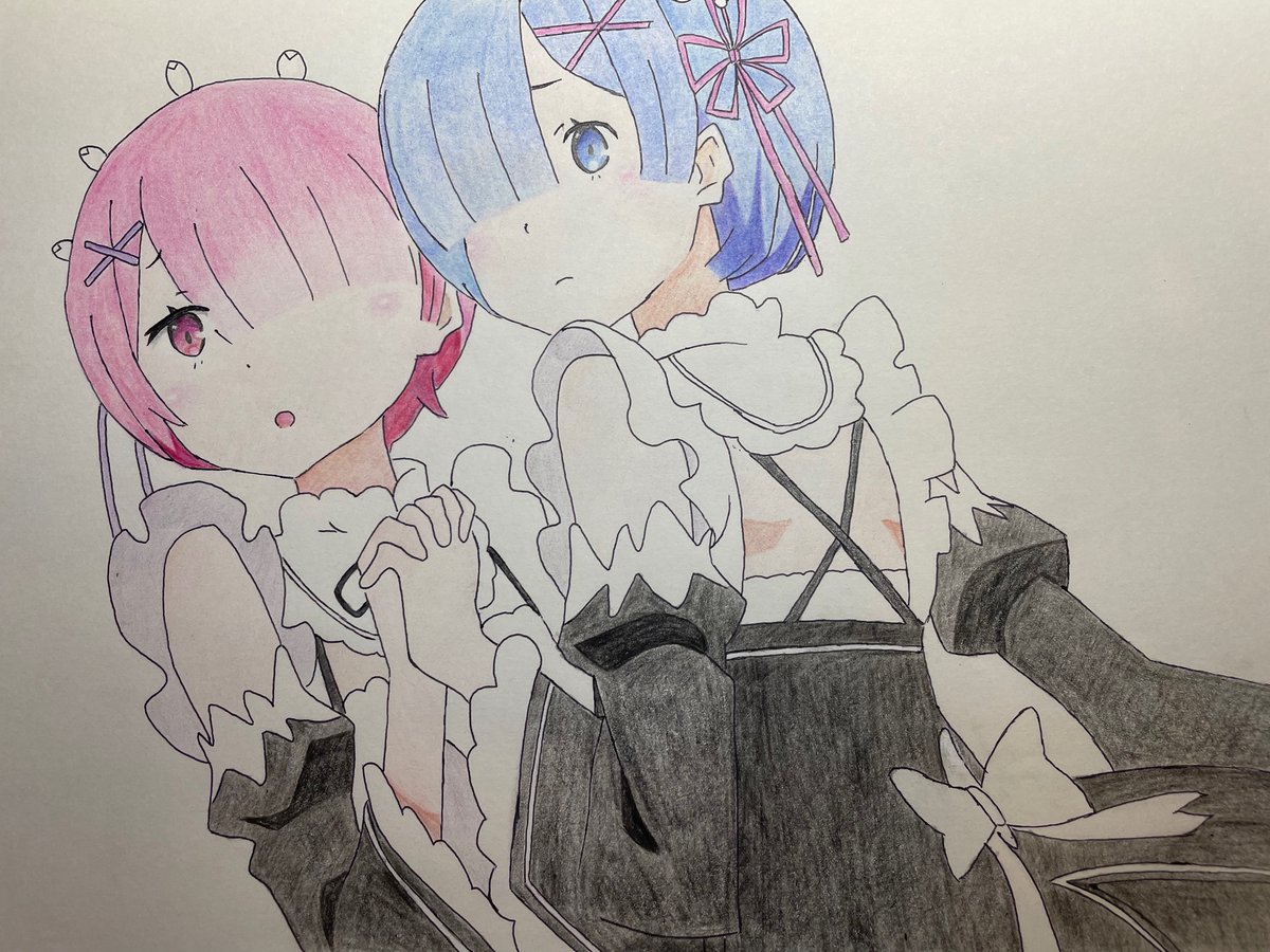 リゼロのレムとラム(過去絵) 下手… #リゼロ #レム #ラム #模写 #色鉛筆