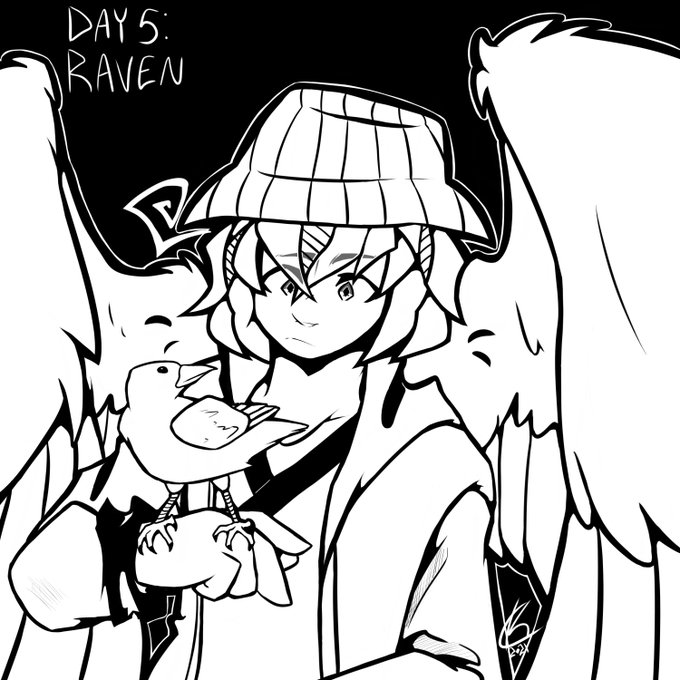 Day 5: Raven yeah I know he's technically a crow but most people can't even tell the two birds apart and I wanted to draw the birb boy #inktober #inktober2021 #inktober2021day5 #philza #philzafanart
