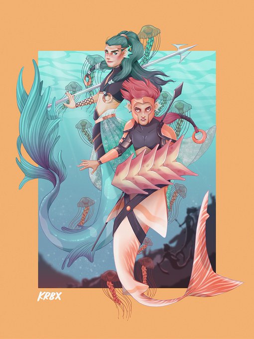 "Get behind me your highness" "Oh please! You know I'm a better fighter. I hit harder than you!" "Debatable. But I admit we make a good team" "We make a great team" #mermay #mermay2021 #artph