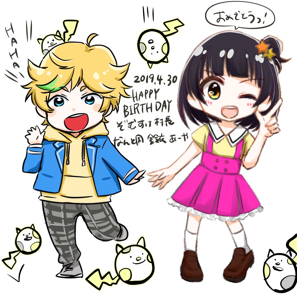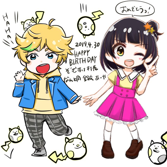3 5 @_ZOMSUKE 村長お誕生日おめでとうございます!3人で描きました! 19/04/30 02:41