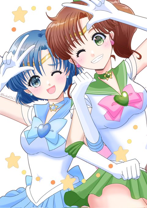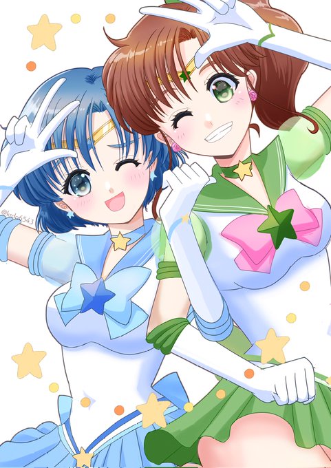 遅くなりましたが今週も参加させてください!!✋😇 スーパーセーラーマーキュリー!!💙💙💙 そして、 スーパーセーラージュピター!!💚💚💚 いよいよ公開間近ですね!!🌟😊🌟 #セラムンイラスト部週ドロ #セラムンイラスト部