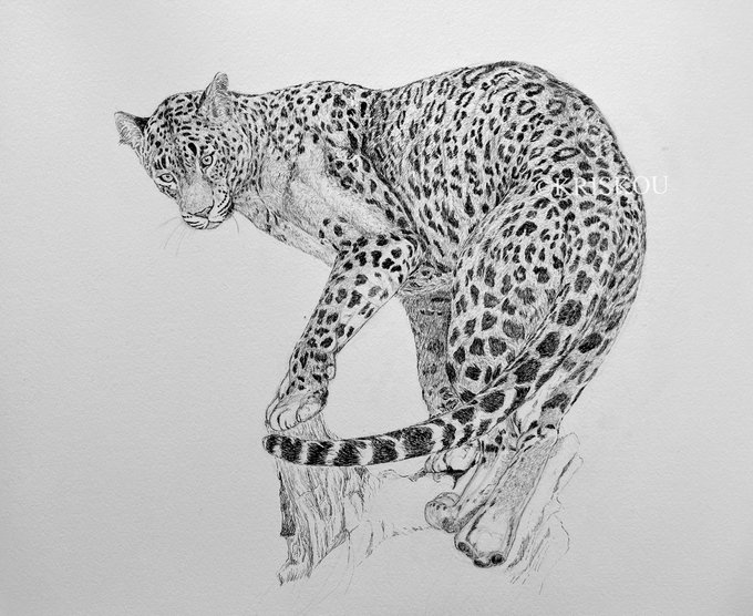 GM8.16 Pen&Ink with Coffee Leopard #フォロワー10000以下の一次創作作家発掘フェス #art #絵描きさんと繋がりたい #ペン画 #ink #penandink #アナログ #inkdrawing