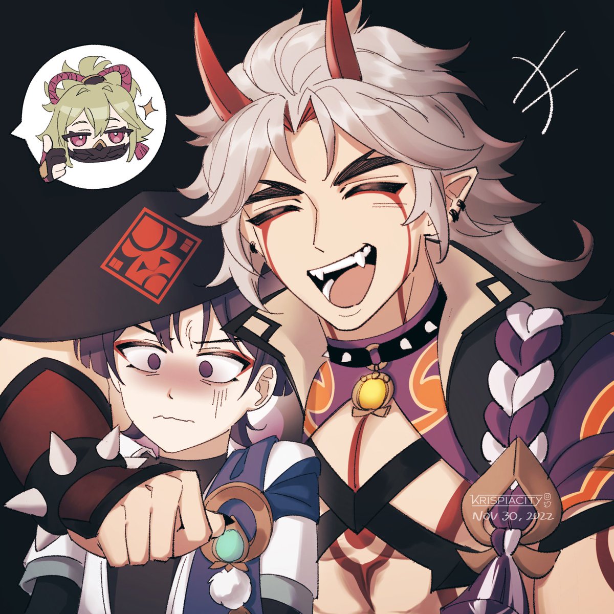 Wanderer joins the Arataki Gang!! I think he would fit right in #wanderer #scaramouche #itto #genshinimpact #fanart #GenshinImpactCC