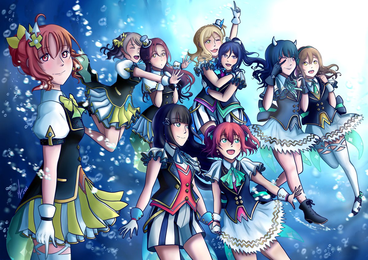 Aqours8周年おめでとう! ずっと、だいすき。。。 『Fantastic Departure!』is still one of my favourite songs, so I drew it for this year's anniversary. Thank you for inspiring me every day! I am so grateful for your existence. I love you, Aqours! #lovelive #Aqours #Aqours8周年