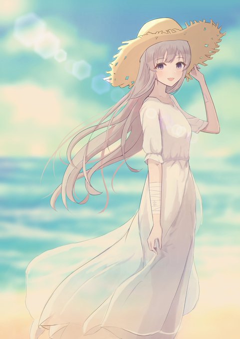 表紙絵です…!! 白ワンピ麦わら帽子霧子です…!! #C100