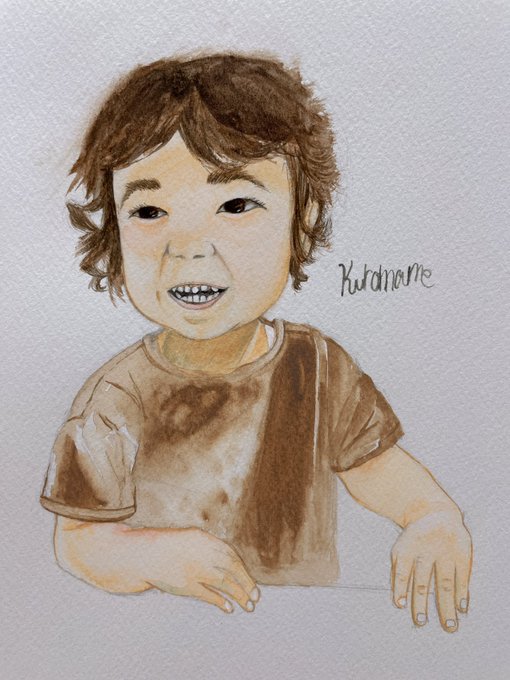 0 1 息子。 水彩画で似顔絵描かないから難しい、、 #水彩画 #似顔絵 22/09/22 14:37