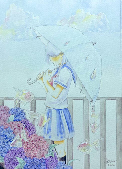 0 3 今から水彩画描くよ\\\\٩( 'ω' )و //// #過去イラスト #創作 #ラフ画 #水彩画 #私の絵柄が好みって人にフォローされたい 22/09/29 12:18