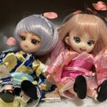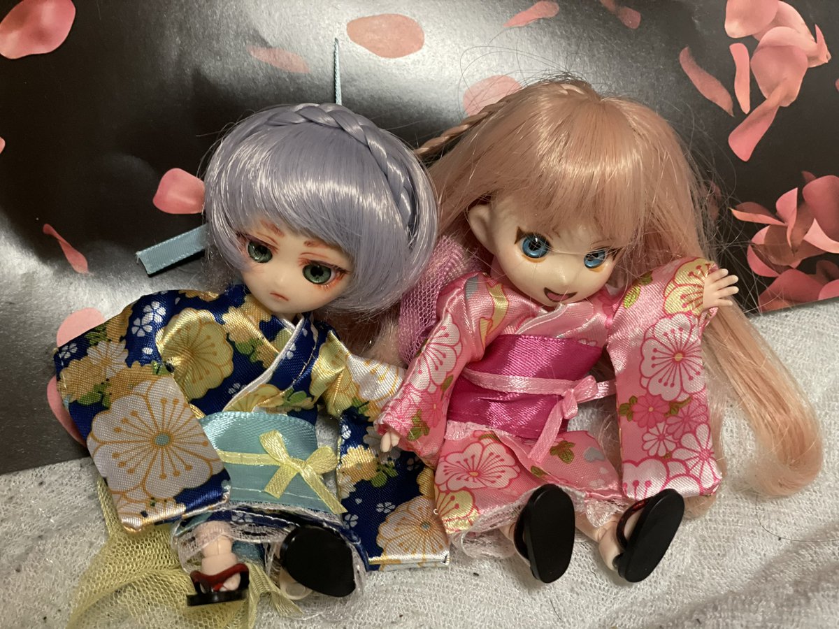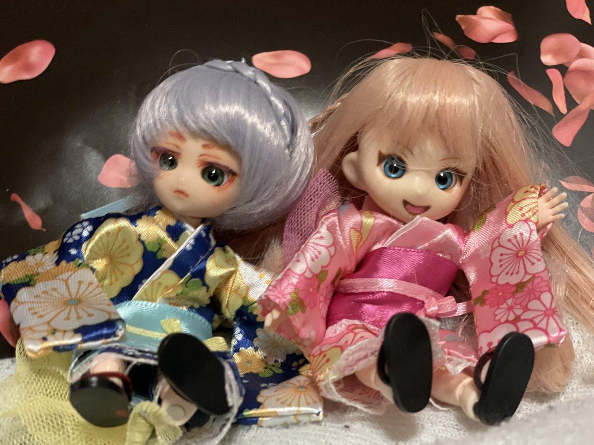 #今夜のドール撮影120分一本勝負 初参加!! 今夜のお題【すわる】 背景は良いのなかったから座ってるようには見えないかも💦 こととまきは一応手を繋いでる🥺 #ことのとまきの記録 #うちの子かわいい