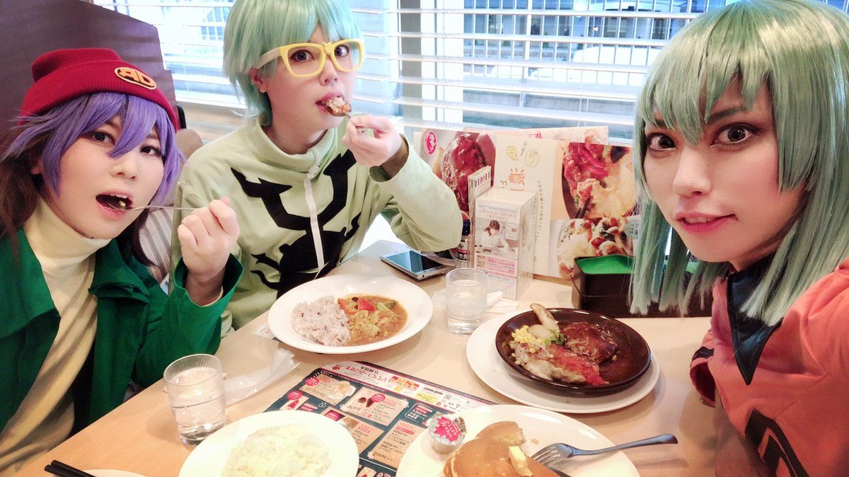 アコスタ インセクター羽蛾でした! 絽場と竜崎と一緒!みんなでごはんかわいいね❣️(カレーは服にこぼした) 撮影掲載許可済み