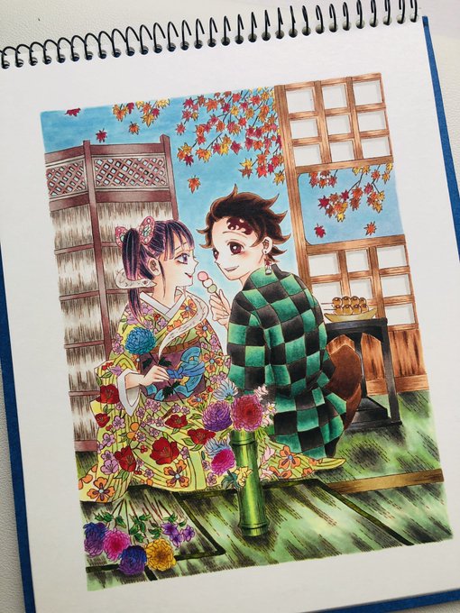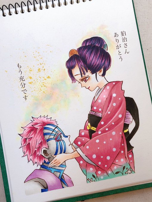 「狛治さんありがとう」 #はくこゆ #狛治 #恋雪 #猗窩座 #鬼滅の刃 #鬼滅の刃イラスト #鬼滅の刃ファンアート #鬼滅の刃好きさんと繋がりたい #コピックイラスト #DemonSlayer