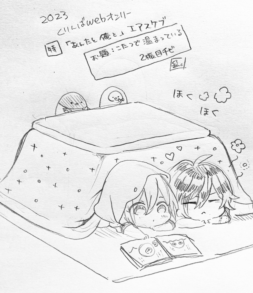 11 76 くりんばWebオンリー記念 🌸エアスケブその2🌸 リクエストありがとうございます! お題:こたつで温まってる2振り目チビ 23/01/15 20:20