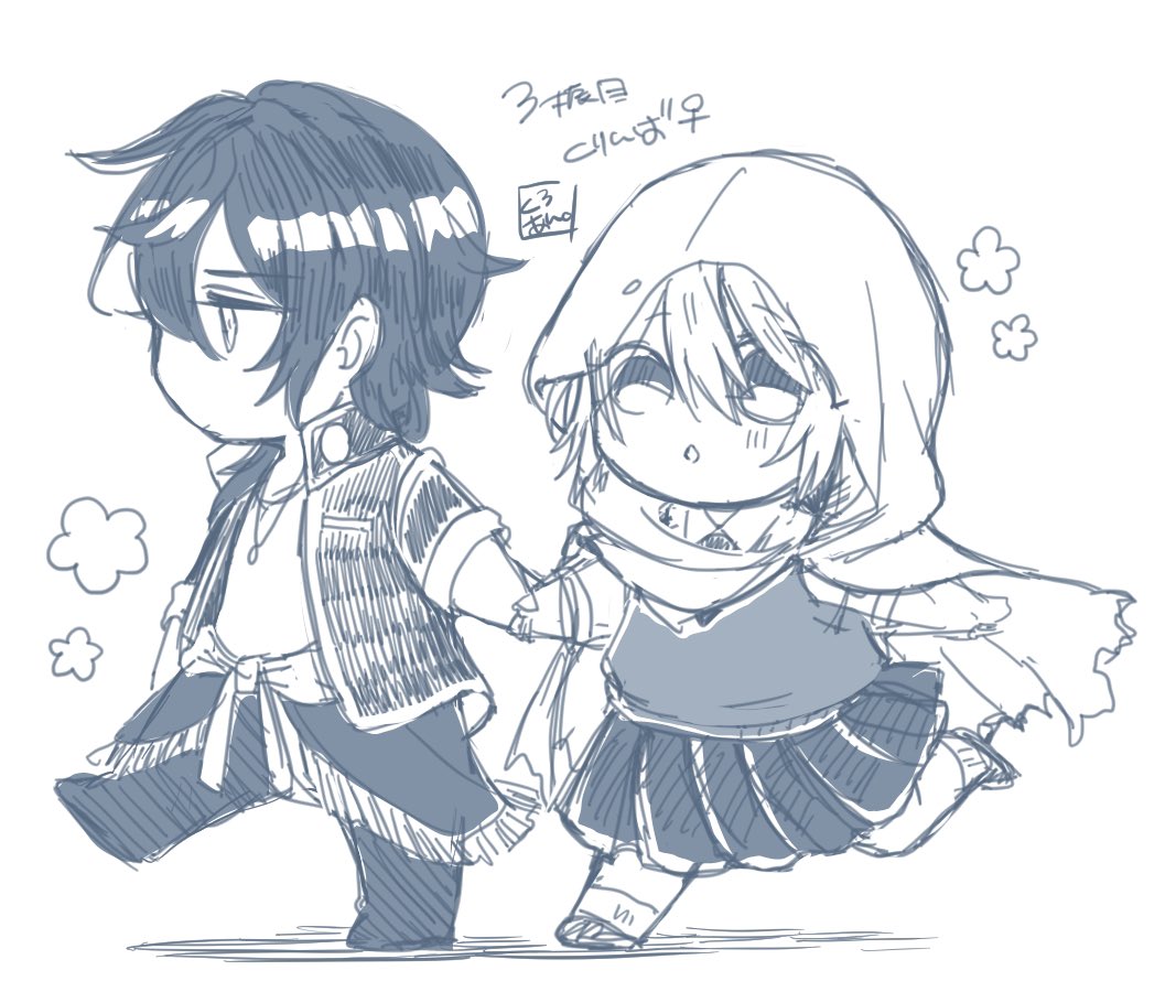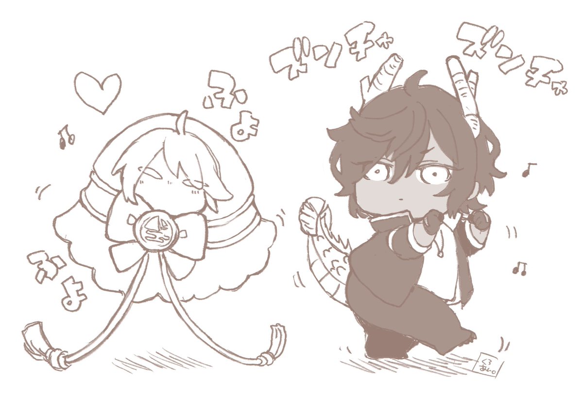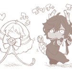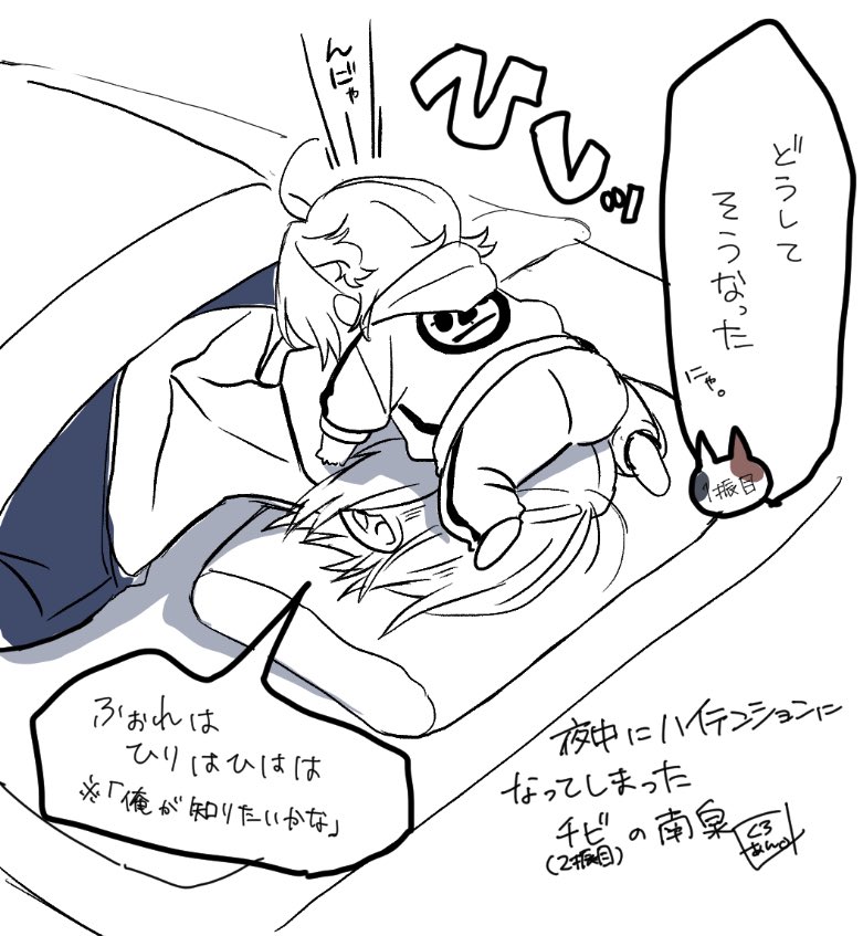 10 69 くりんばWebオンリー記念 🌸エアスケブ🌸 リクエストありがとうございます! お題:まにまにちゃんと戯れる2振り目チビ #あん俺 23/01/15 17:32