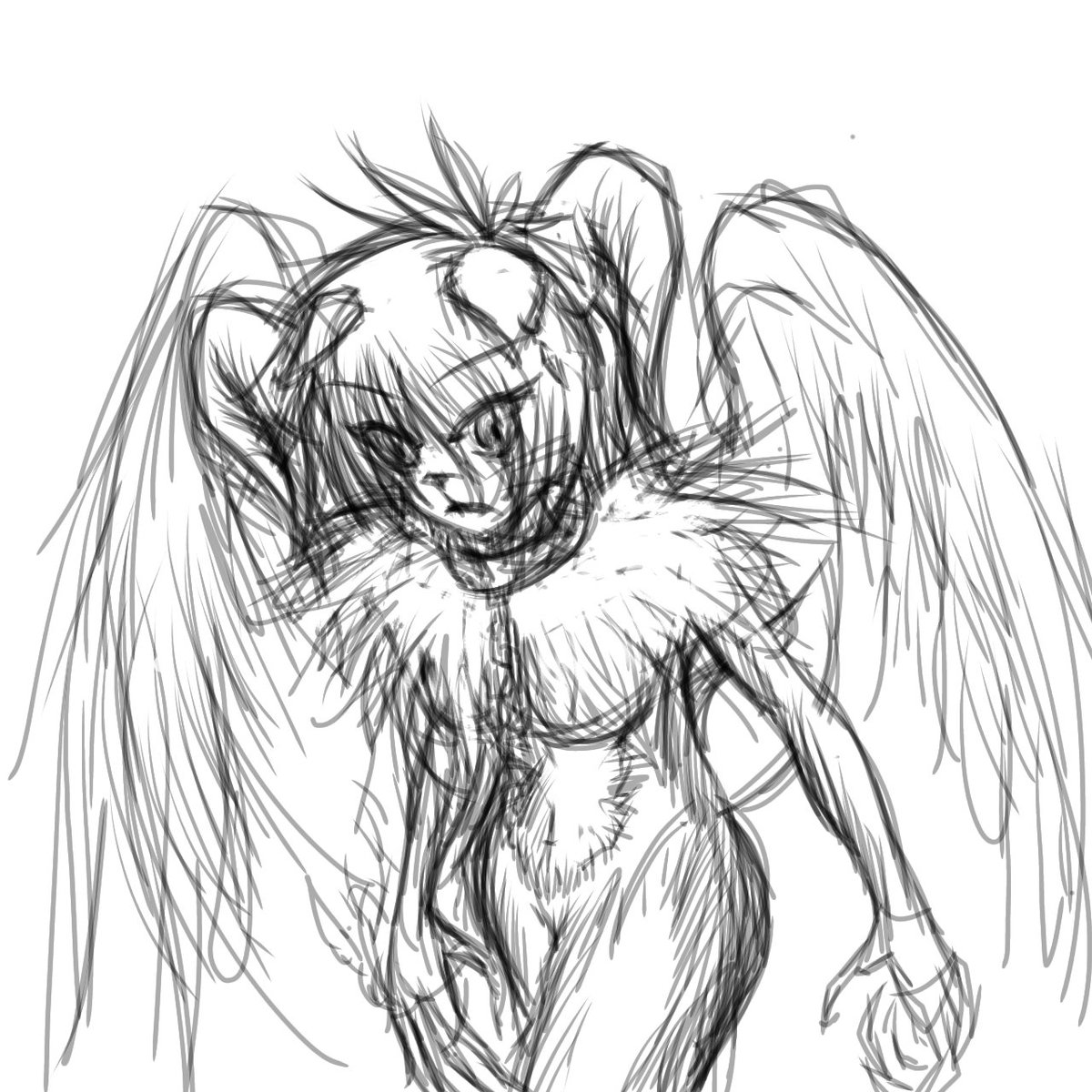 下書き→アイビス取り込み、自動色塗り #イラスト 10分間くらいドローイング モンスター娘は描いてて楽しいね( ╹▽╹ )