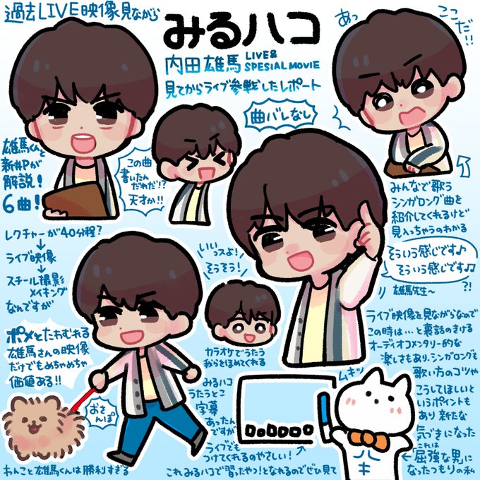 みるハコで「内田雄馬 LIVE & SPECIAL MOVIE」を視聴してライブツアーに参加してきたイラストレポートを描きました! 曲バレ無しです! LIVEの予習としてだけでなくライブ映像のオーコメ的な楽しみ方もできるの良! メイキングも必見でした🐶 #みるハコで内田雄馬