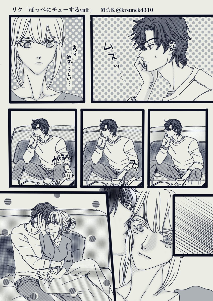 ちのりさん @cnr0818 からのリクで「ほっぺにチューするynfr」。 唐突に甘いのをぶっこみたくなる病です。 楽しく描かせていただきました!ありがとうございます😊