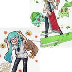 すりみ連合完成! スキャナーで読み込んだらウツボちゃんの睫毛の色がとんじゃった🤦 早くスプラトゥーン3で遊びたい🦑🐙 #すりみ連合 #コピック #霧夜ねこの絵