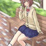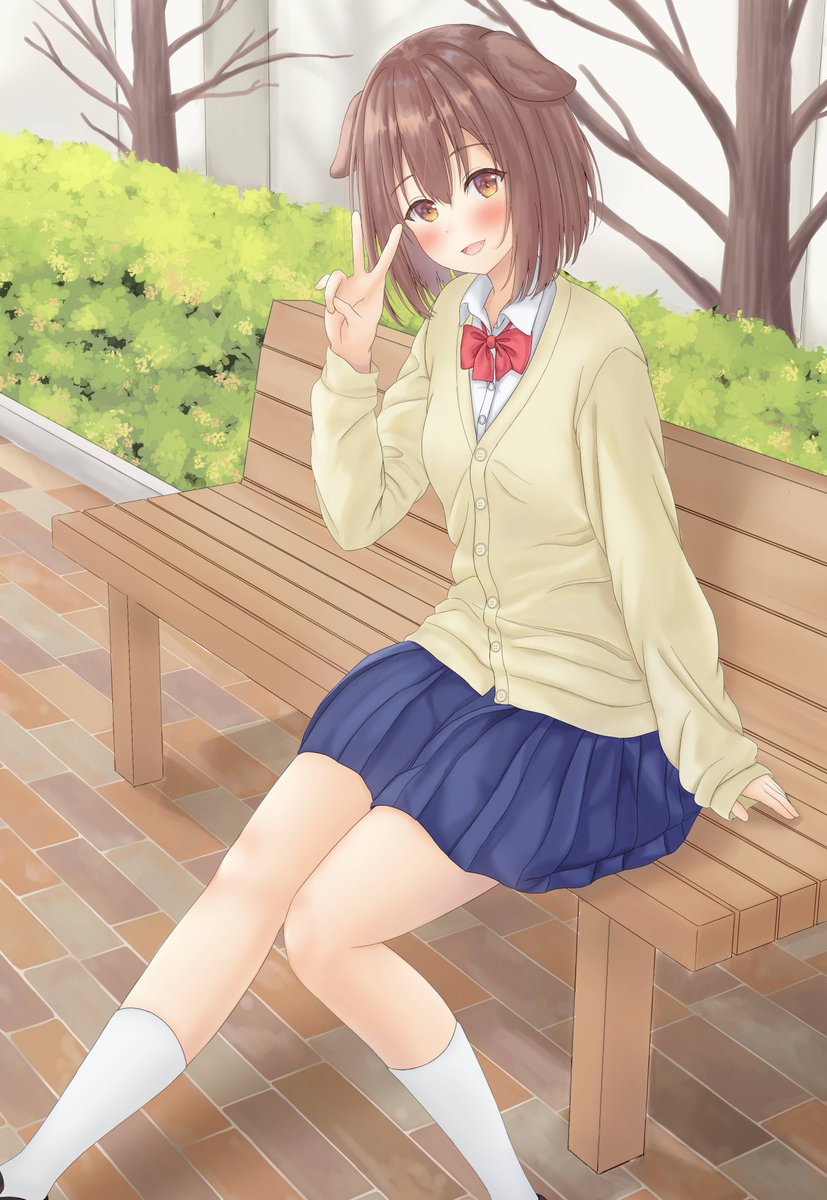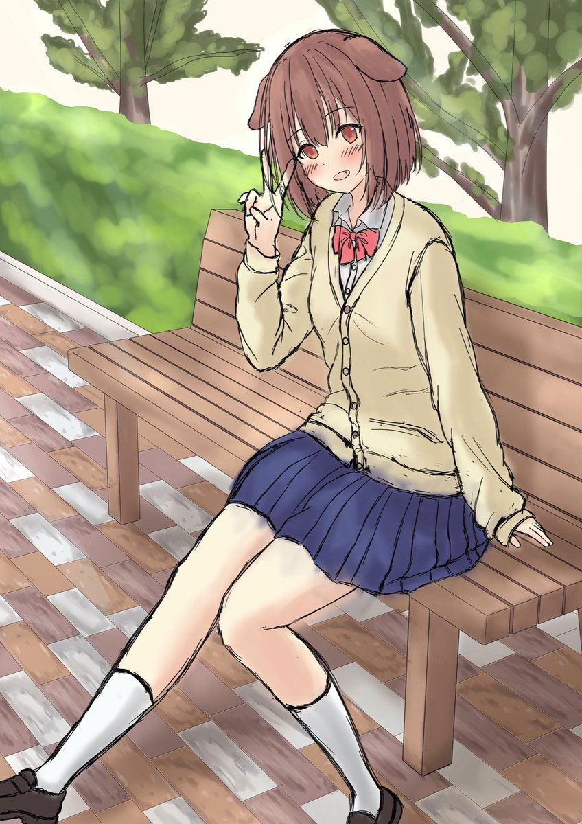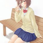 学校の中庭で待ち合わせ 隣の空いてるベンチは僕がもらいます! #できたてころね #ホロライブ