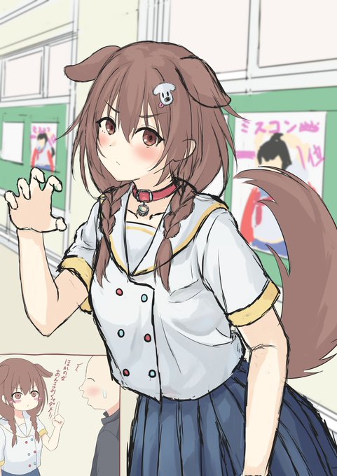 学校の中庭でころさんと待ち合わせ (ラフ) #できたてころね #生神もんざえもん