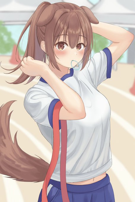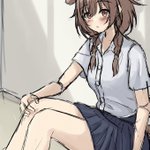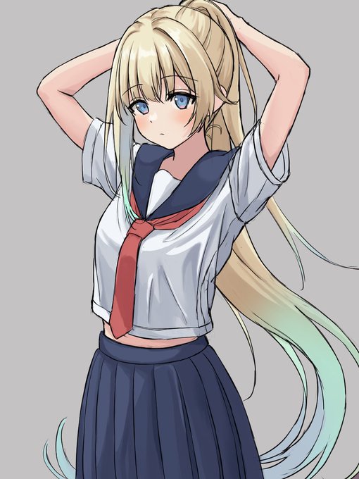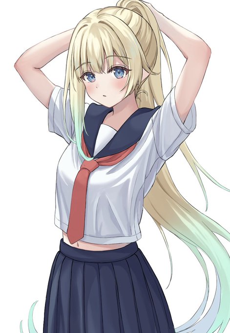 制服とポニーテールとおへそ ラフ #えまぁーと