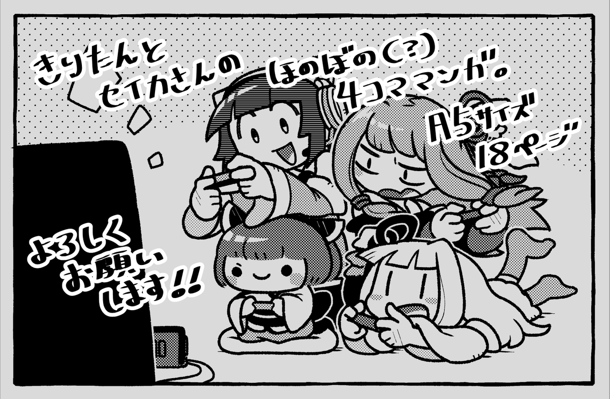 ボイコネ2に持ってく新刊サンプルです📙 きりたんとセイカさんのほのぼの4コママンガとなっておりますよろしくお願いします! #ボイスコネクト2